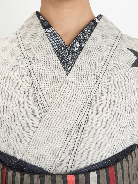 - 地衿をきれいに保ちたい方は、白衿を一枚つけてから、レース半衿をつけてください。