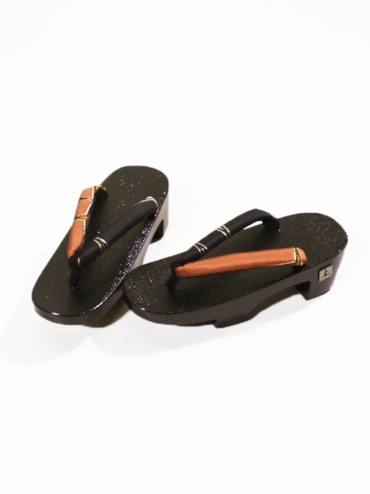 下駄M黒塗台25-02(十字星・オレンジ×ブラック)