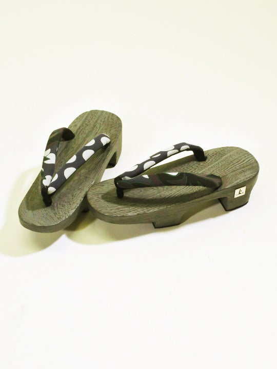 グレー台の下駄は、焼いた台をさらにグレーで染めたこだわりの台。シックな色合いが、さりげなく個性的に。こだわりの下駄をお探しの方に。