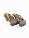グレー台の下駄は、焼いた台をさらにグレーで染めたこだわりの台。シックな色合いが、さりげなく個性的に。こだわりの下駄をお探しの方に。