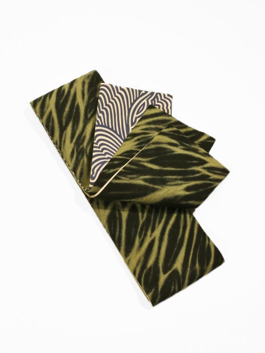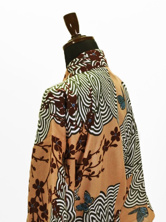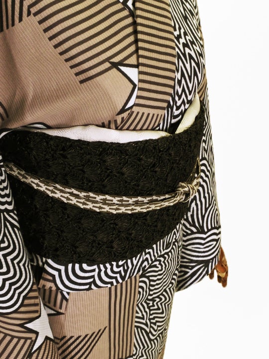 メンズ ポリキモノ 縞ボタン・市松1(ベージュ)