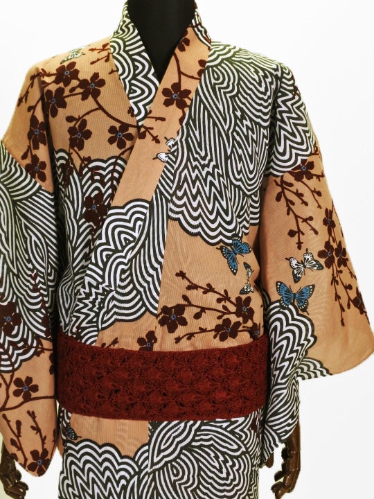 浴衣・J24-01-03 蝶 サーモンピンク(プレタ)メンズ