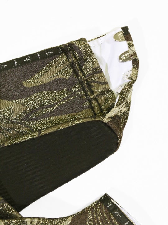 レディースデニム6.5OZ 2ボーダーにレオパード1(BK×金茶)F