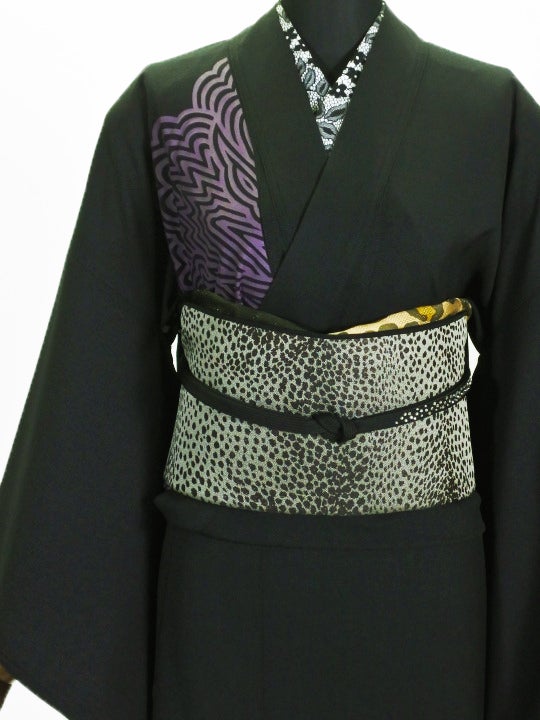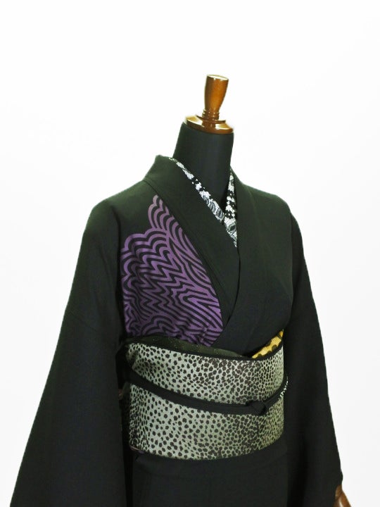 レディース ポリキモノ 縞ボタン2(ブラック)F