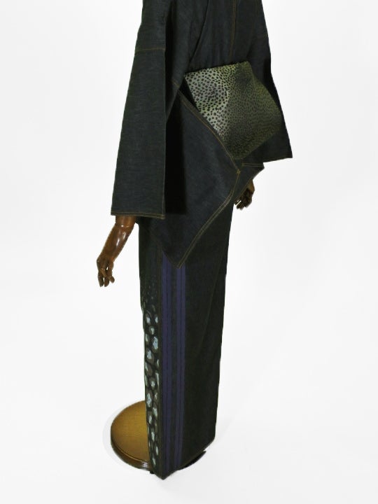 レディースデニム6.5OZ 2ボーダーにレオパード1(濃BK×金茶)F