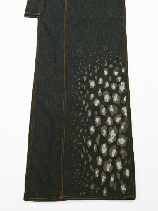 レディースデニム6.5OZ 2ボーダーにレオパード1(BK×金茶)F