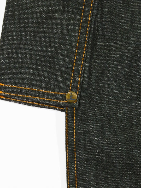 レディースデニム6.5OZ 2ボーダーにレオパード2(濃BK×金茶)F