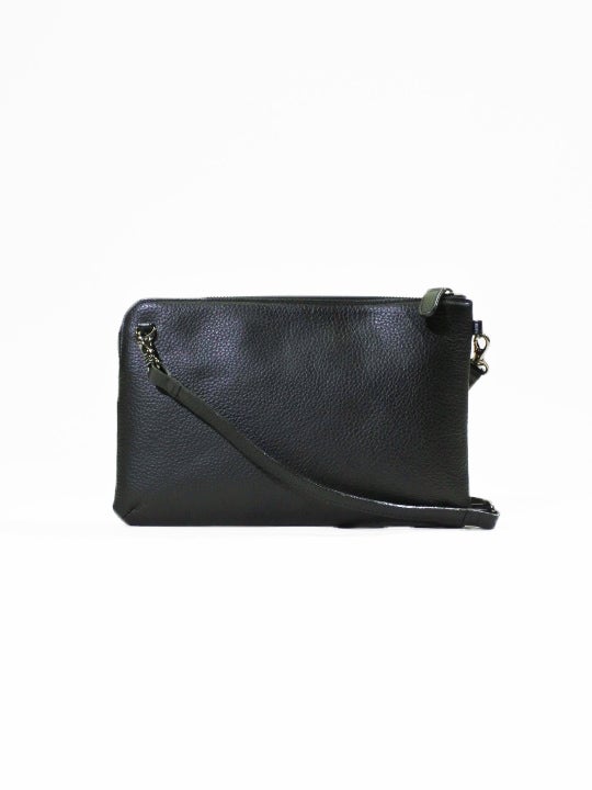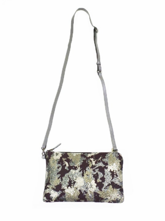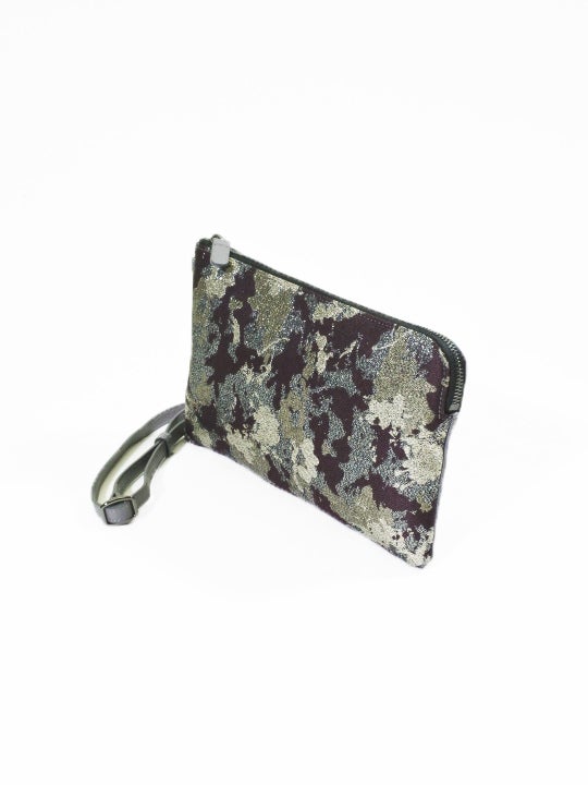 二つ折クラッチ 箔モール縞ボタン クロアカ(革クロ)