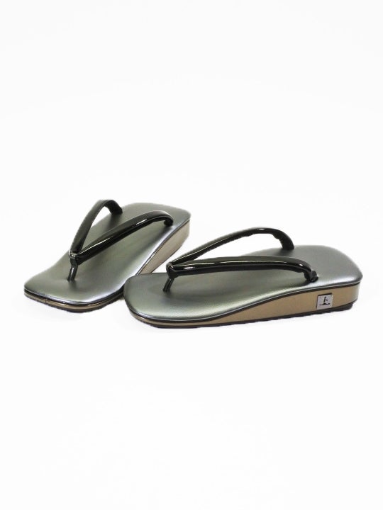 メンズ雪駄 革ロゴ付(チャ×グレーシボ×グレー)