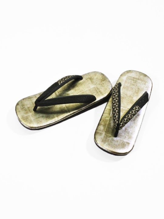 メンズ雪駄EVAソール 切替市松×シルバー革(ゴールド)