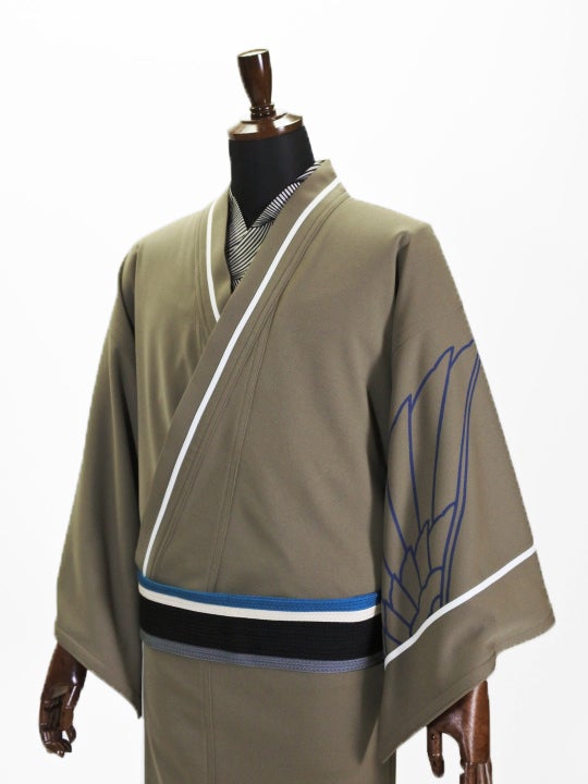 メンズ ポリキモノ 枝葉シルエット1(ベージュ)
