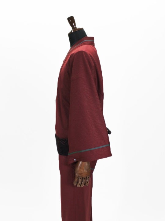 メンズ 麻ポリキモノ 枝葉シルエット1(ブラック)