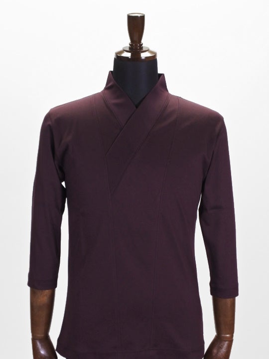 長襦袢の代わりにお使いいただけるキモノ衿カットソー。お洋服感覚で洗濯機でお手入れ可能な手軽さと、半衿を縫う手間いらずで、画期的と大好評。キモノからカットソーが出ないように7分袖にしております。衣紋が抜けないため、男性専用となっております。キモノをよく着られる方や、仕事としてキモノを着る方にも重宝されております。長襦袢の代わりとしてはもちろん、ジャケットのインナーとしても使う方も。キモノ好きな方へのプレゼントにも喜ばれます。