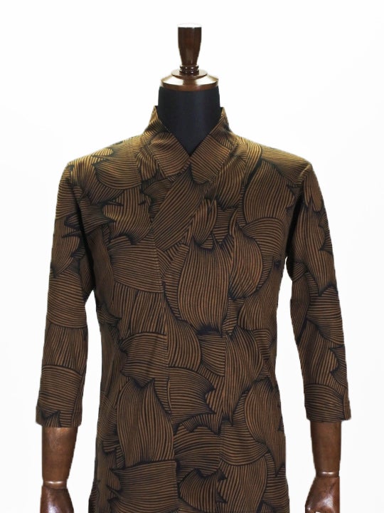 一見大胆な柄にみえますが、衿元からのチラ見せにはいいワンポイントに。