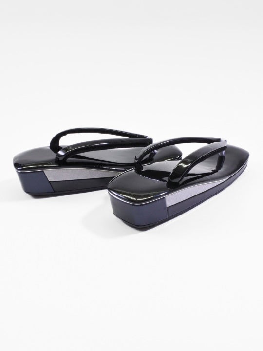 レディース草履 カラー2段(紺×グレーシボ×クロ)
