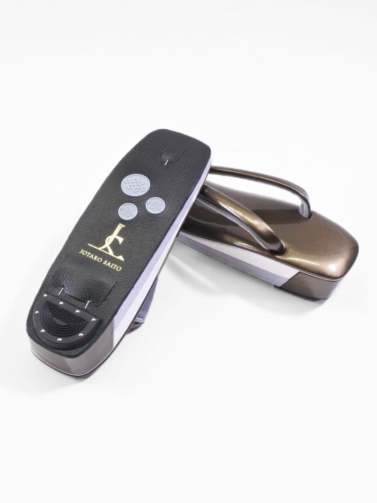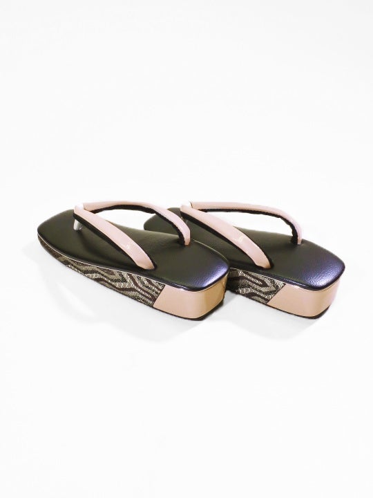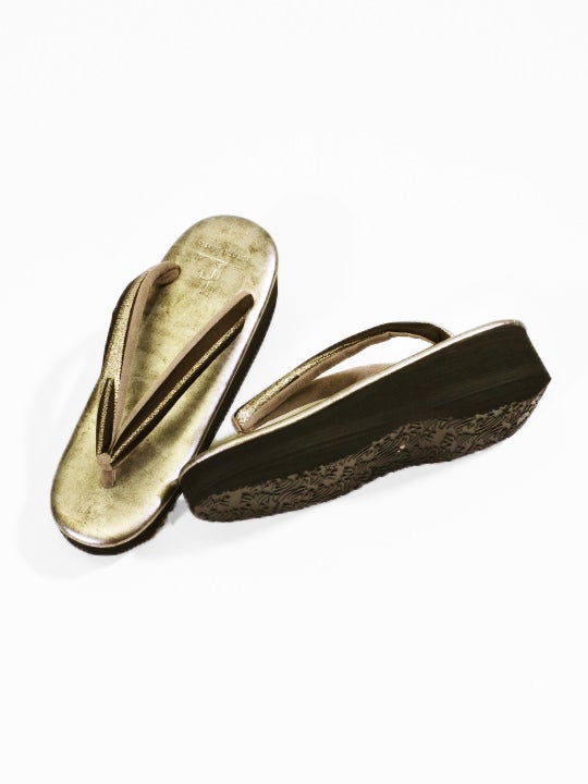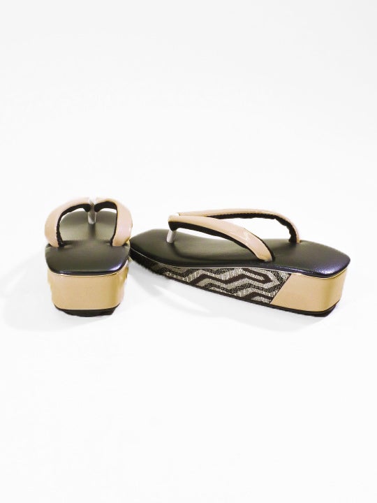 レディース草履EVAソール 切替市松×クロ革(ゴールド)