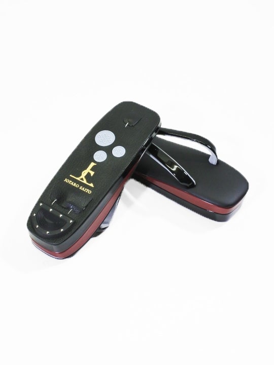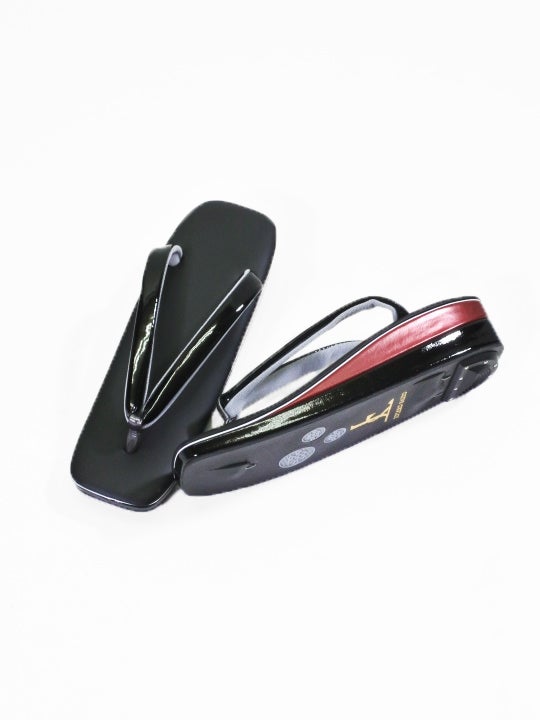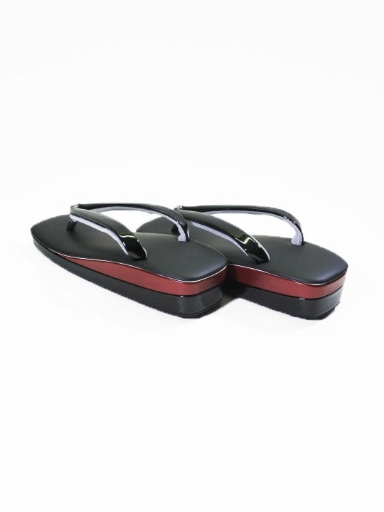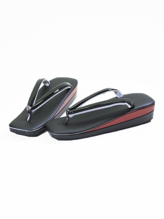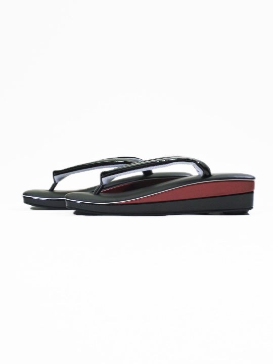 レディース草履 カラー2段(クロ×クロ×アカ)