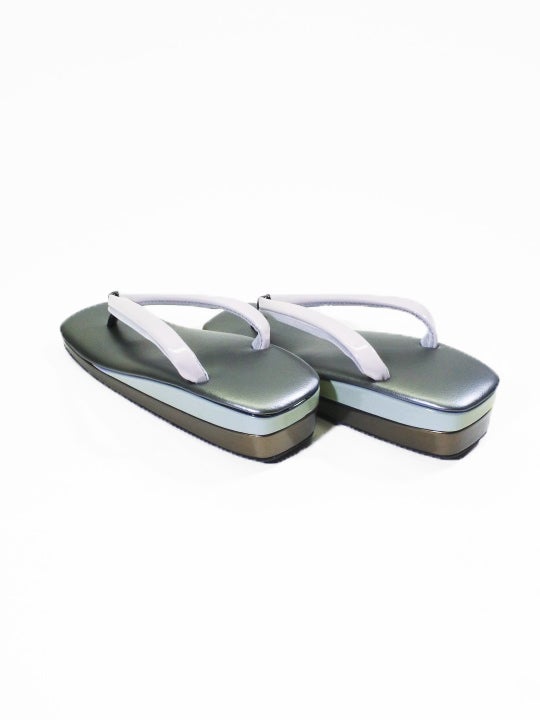 レディース草履 カラー2段(カーキ×グレー×シロ)