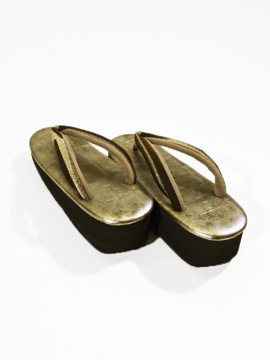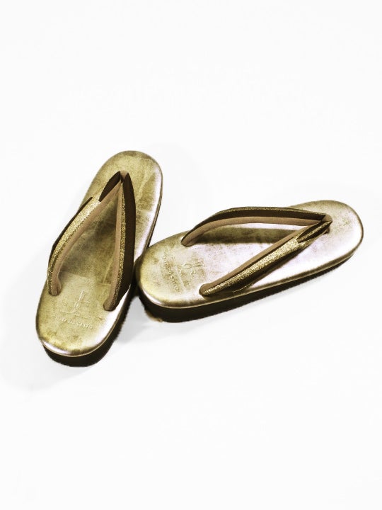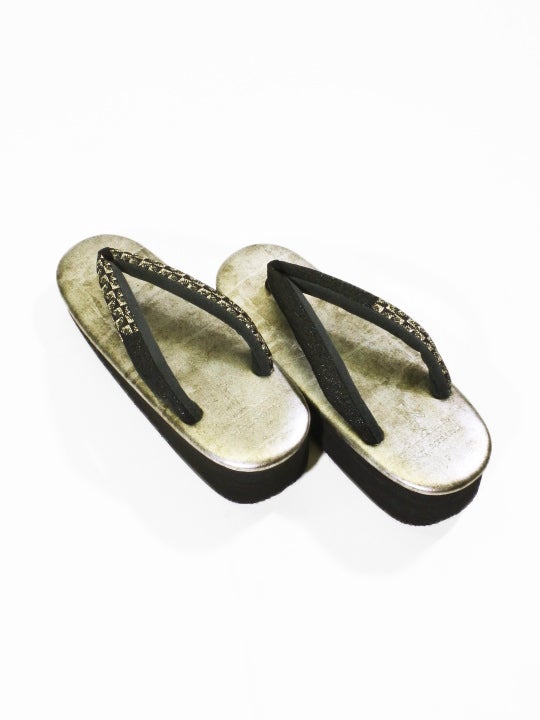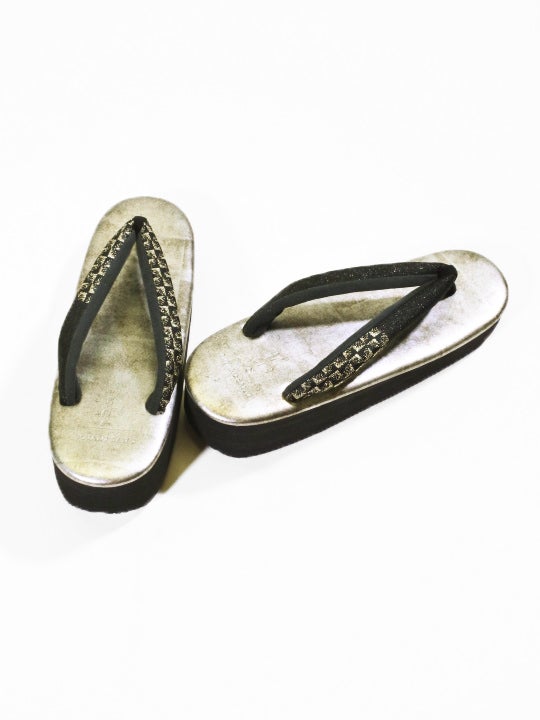 レディース草履EVAソール 切替市松×シルバー革(ゴールド)