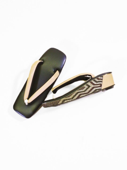 レディース草履EVAソール 切替市松×クロ革(グリーン)