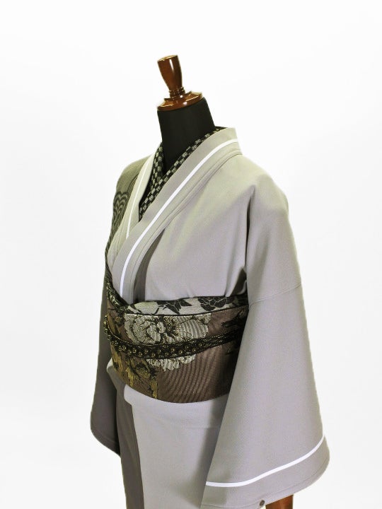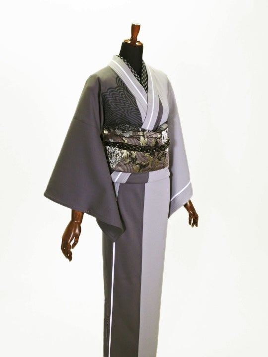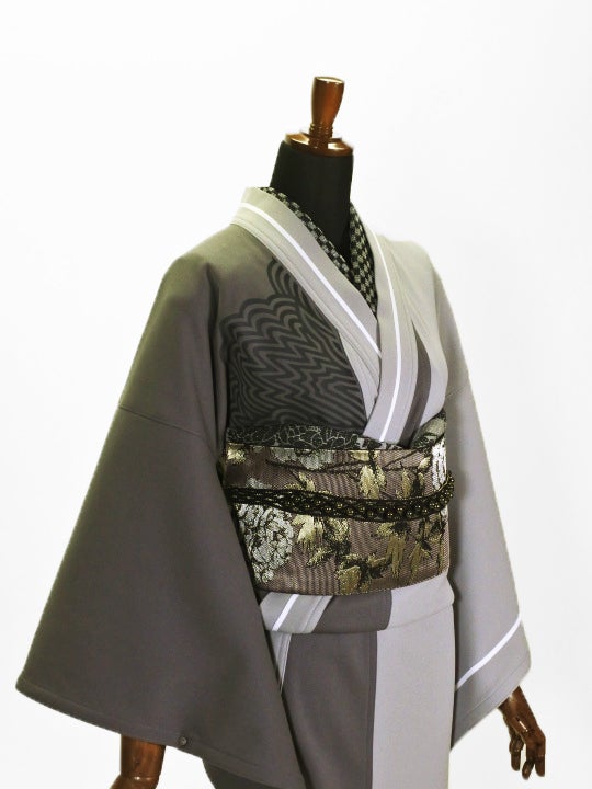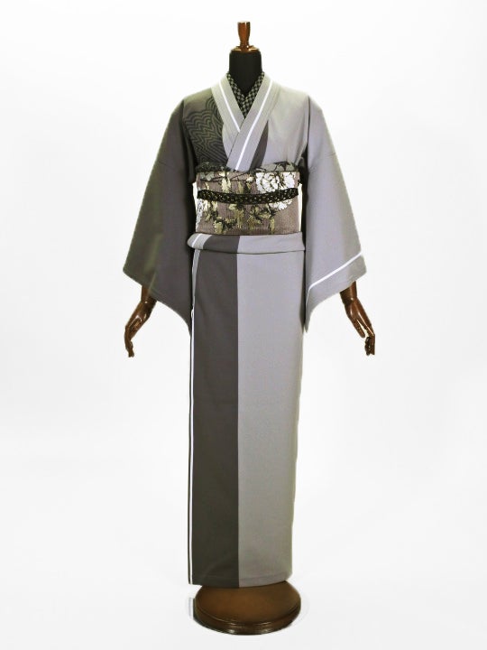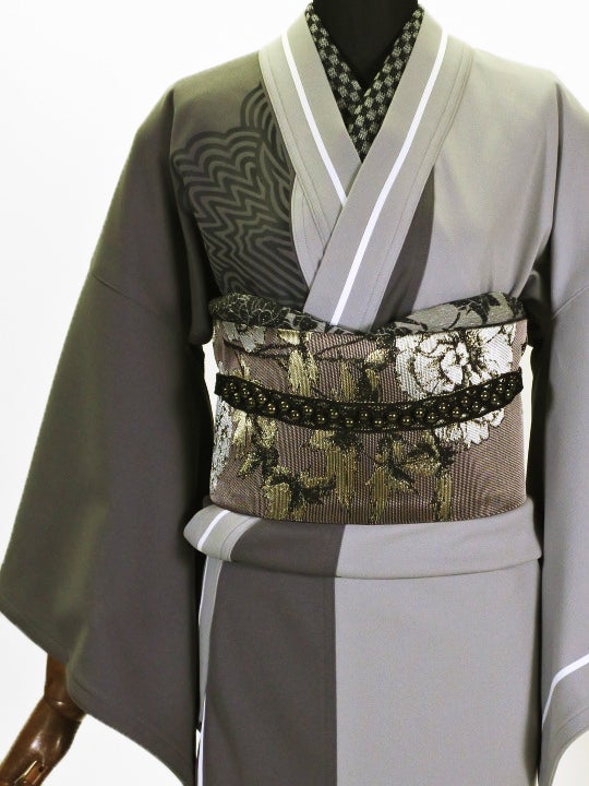 コンポジションキモノ単衣 CK26-03-03〇△□花覗き(グレー)F