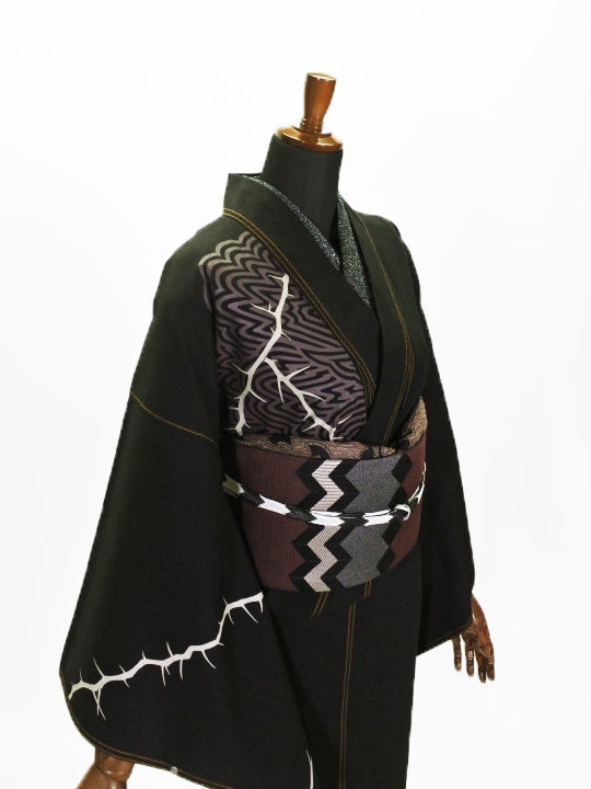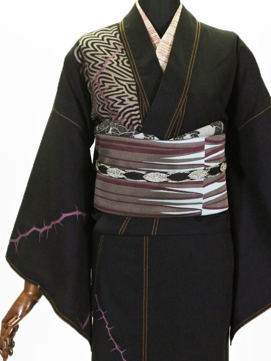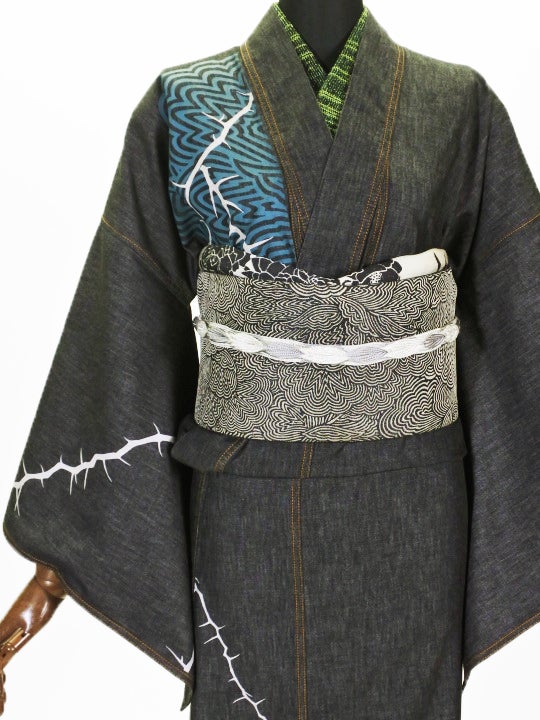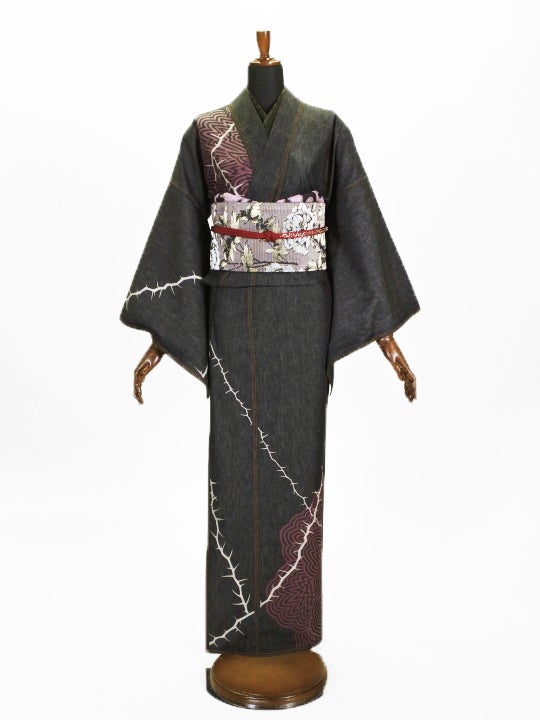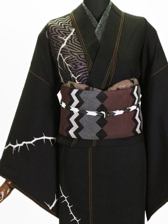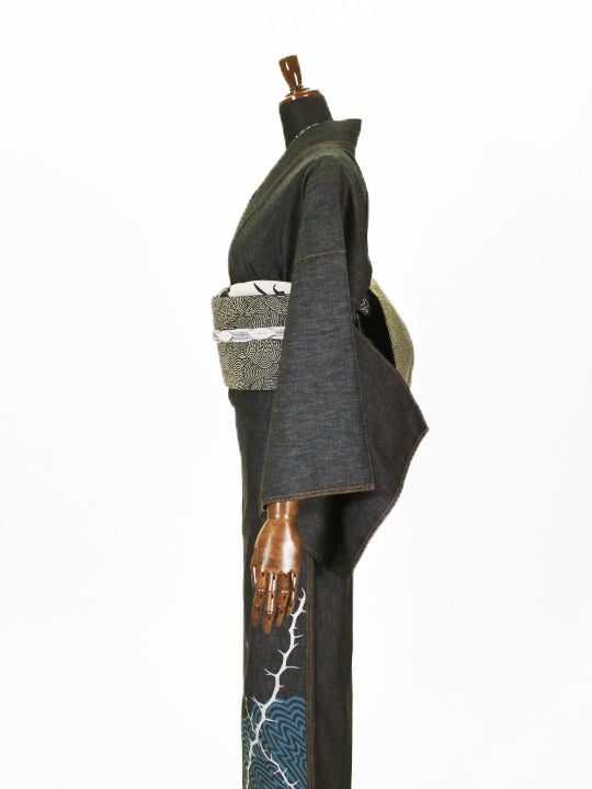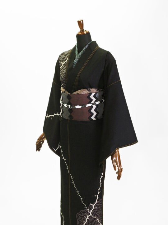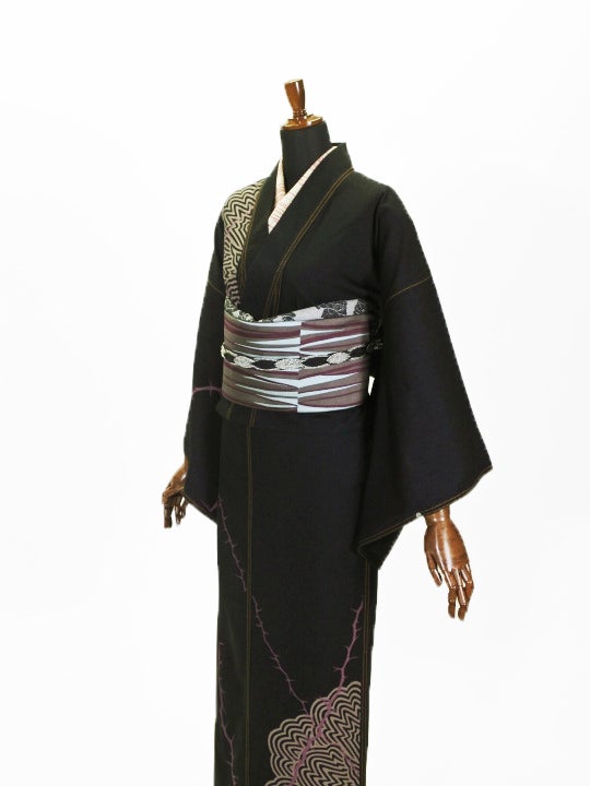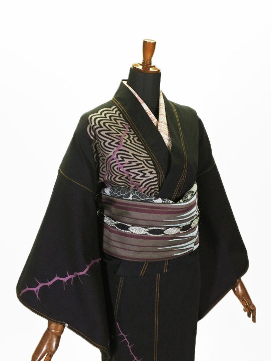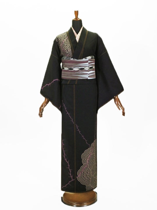 コンポジションキモノ単衣 CK26-03-02〇△□花覗き(クロ)F