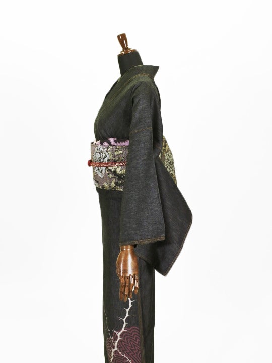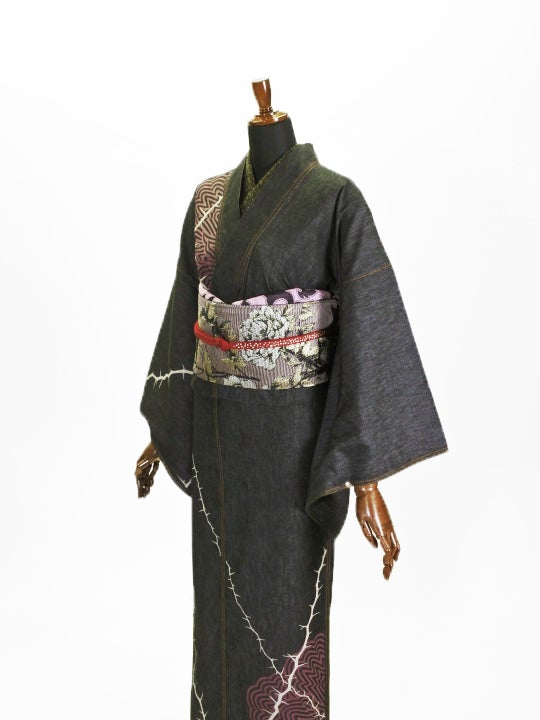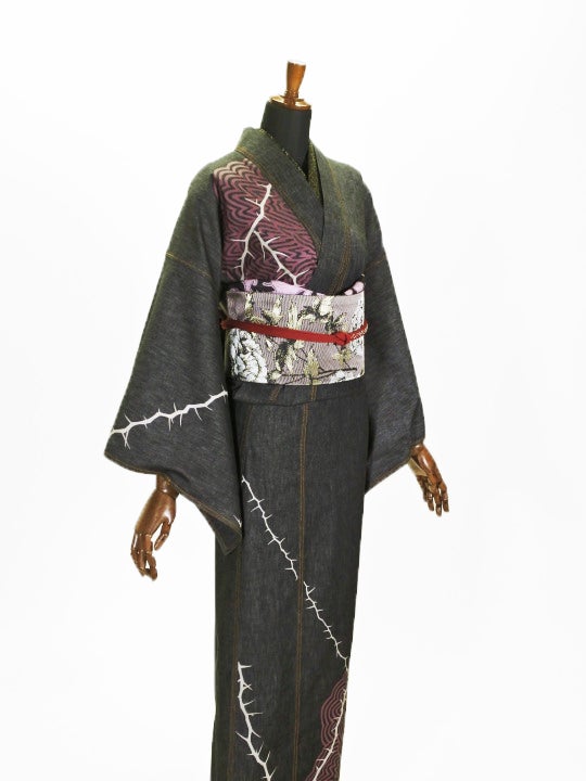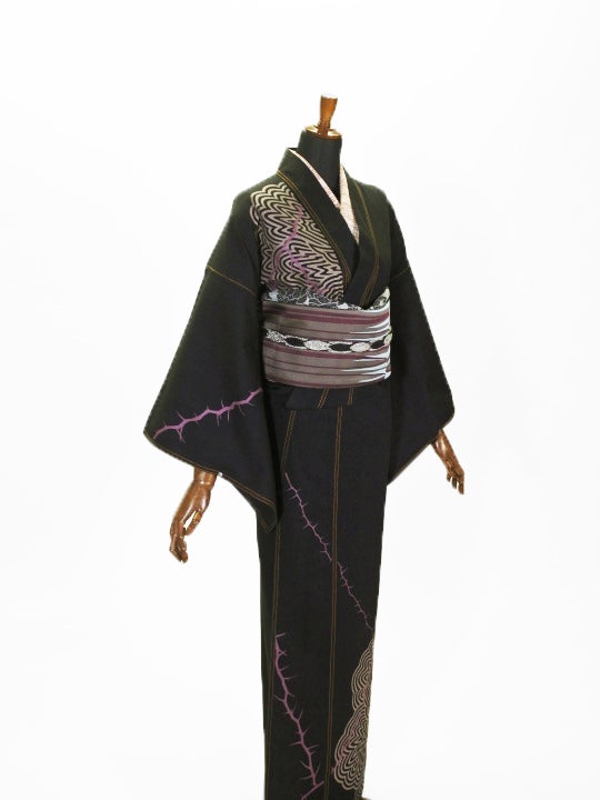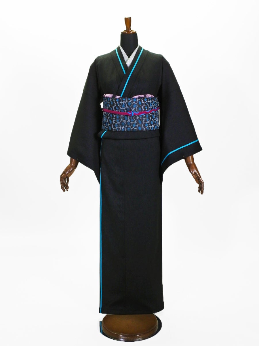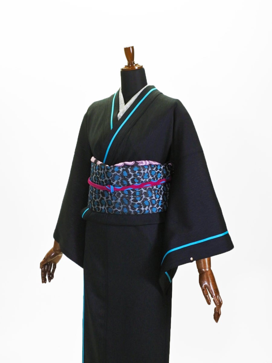 コンポジションキモノ単衣 CK26-03-02〇△□花覗き(クロ)F