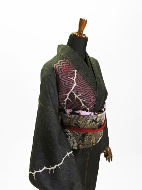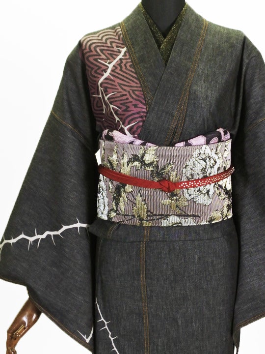 コンポジションキモノ単衣 CK26-02-03宇宙花(菊グレー)F