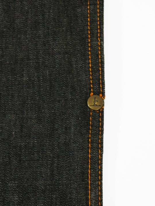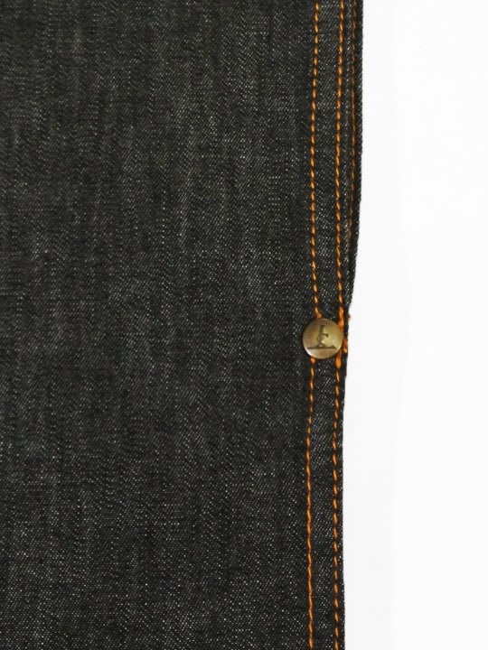 レディースデニム6.5OZ 縞ボタンに棘B(濃BK×金茶)F