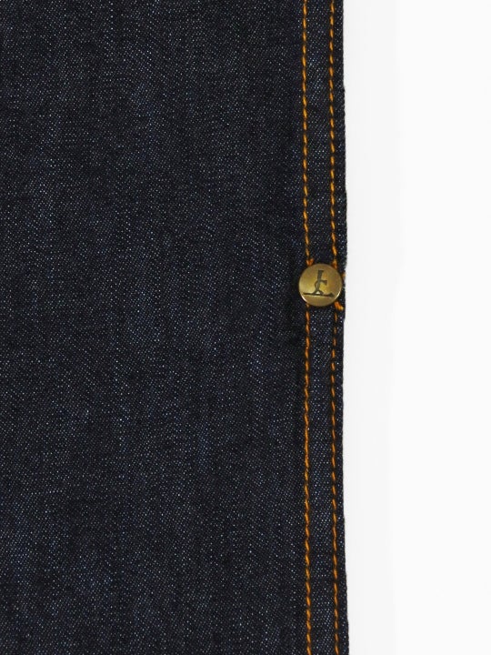 レディースデニム6.5OZ 縞ボタンに棘B(濃BU×金茶)F