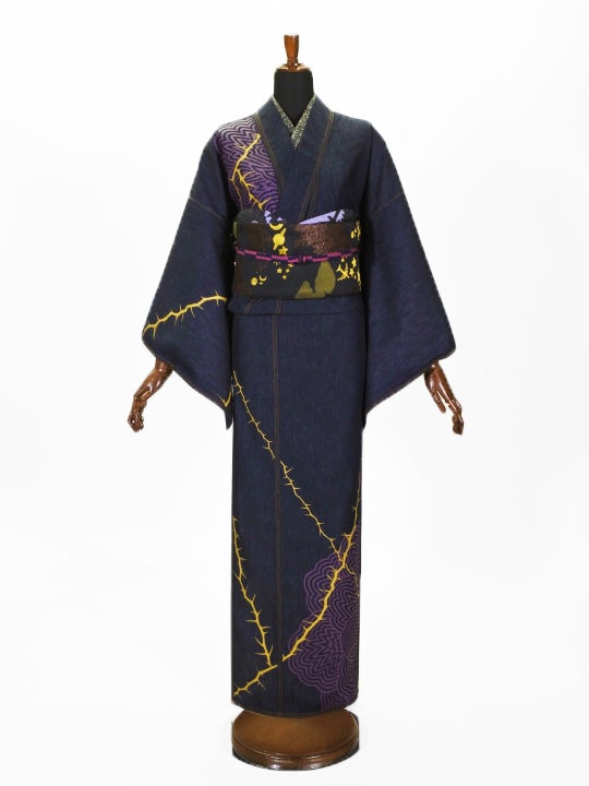 今でこそ、デニムの着物は、世の中に沢山ありますが、発案者は、斉藤上太郎の父で“現代きもの作家の第一人者”の斉藤三才です。 世界初のデニム着物は、1992年(平成4年)6月3日、京都ロイヤルホテルで開催された『第19回斉藤三才個展 SANSAI IN SUMMER』にて発表されました。その後、数々のテストを重ねて、現在の形になりました。