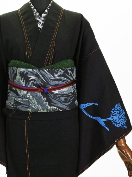 レディースデニム6.5OZ 木立1(濃BK×金茶)F