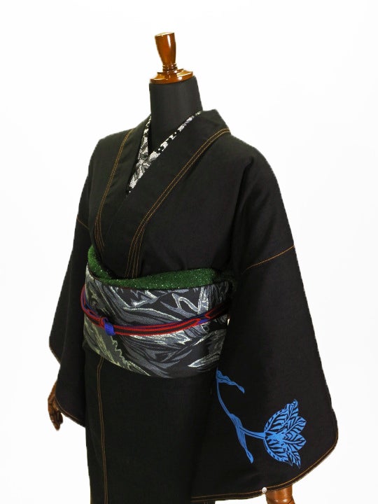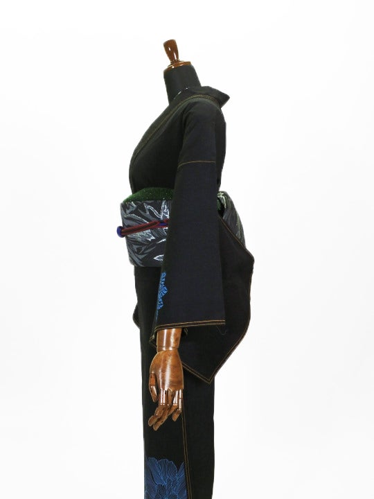 レディースデニム8.0OZ 百花・花散らし2(グレー)F+