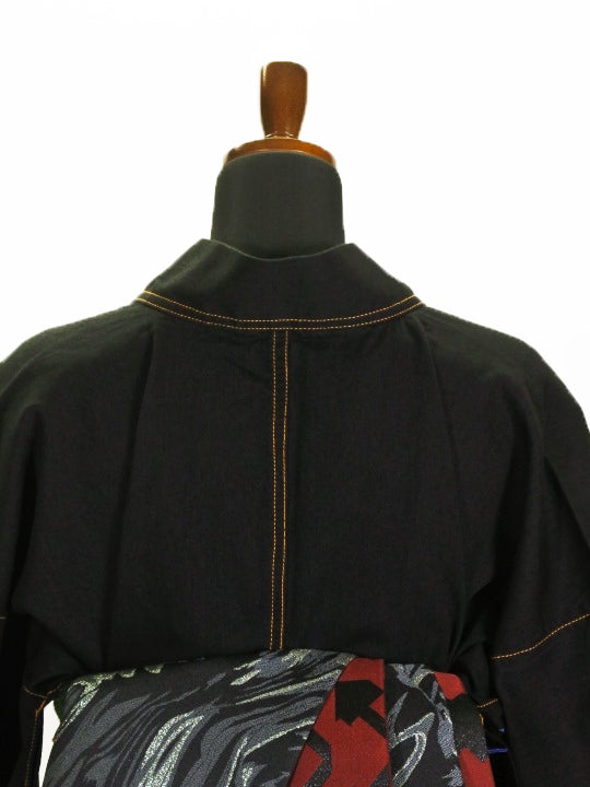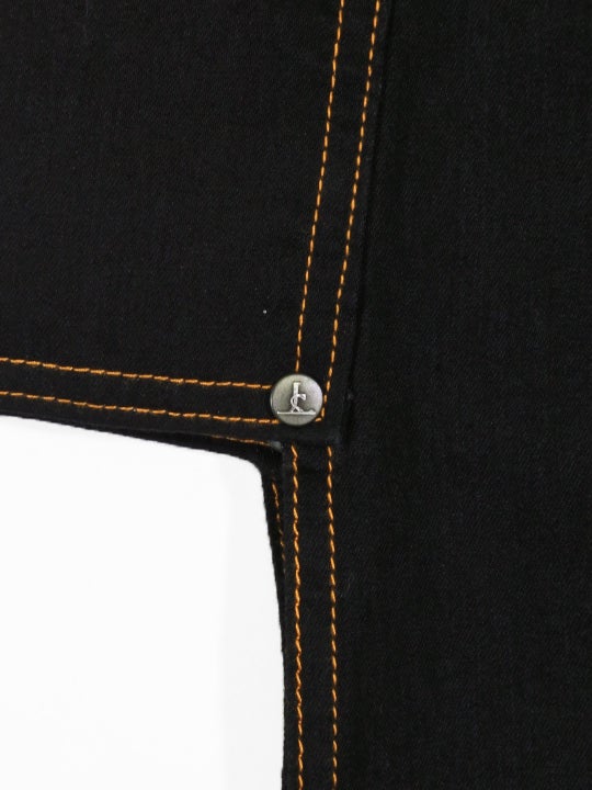 レディースデニム6.5OZ 縞ボタンに棘B(濃BK×金茶)F