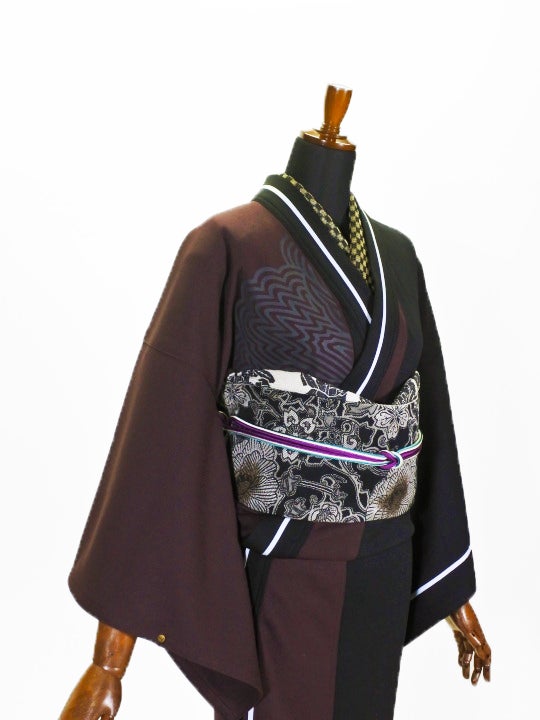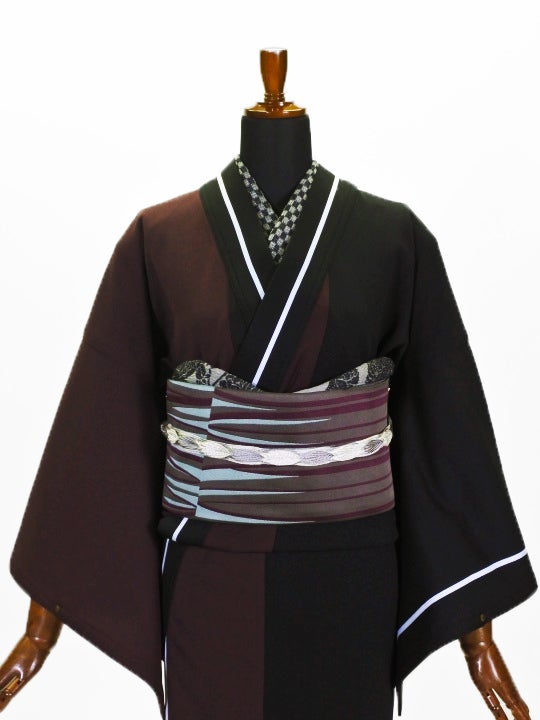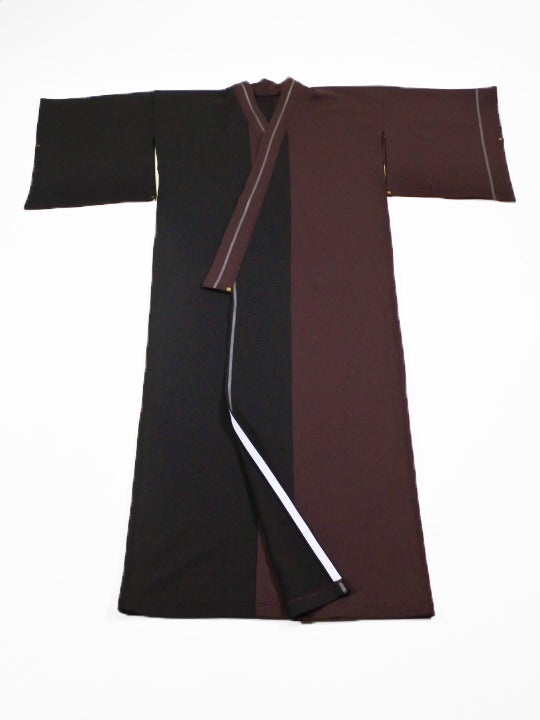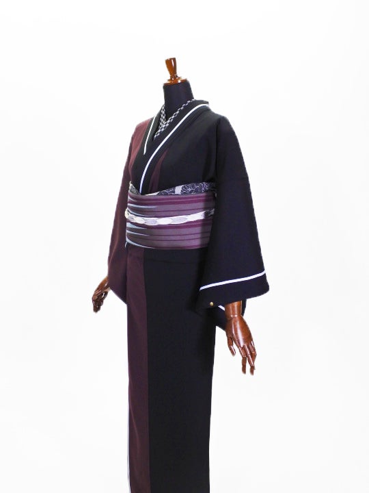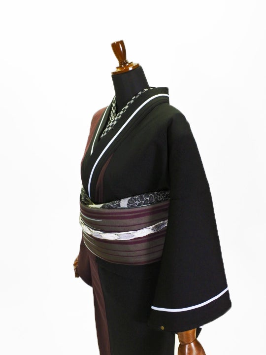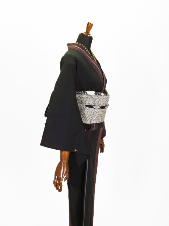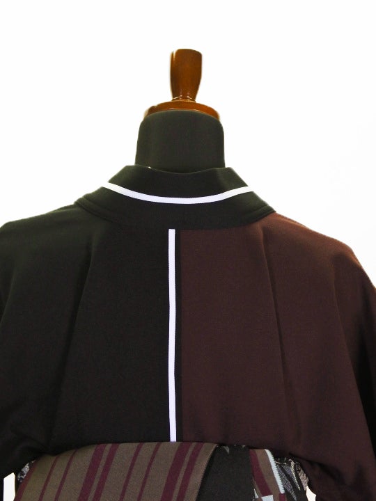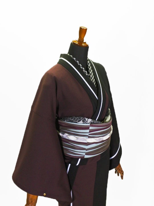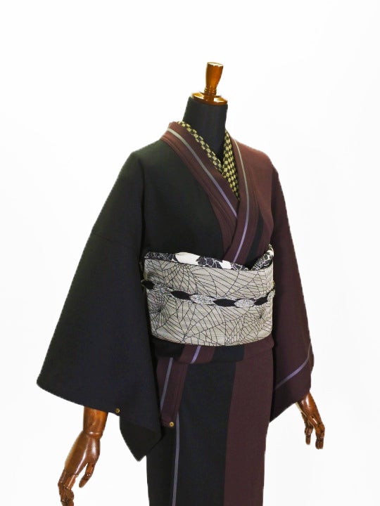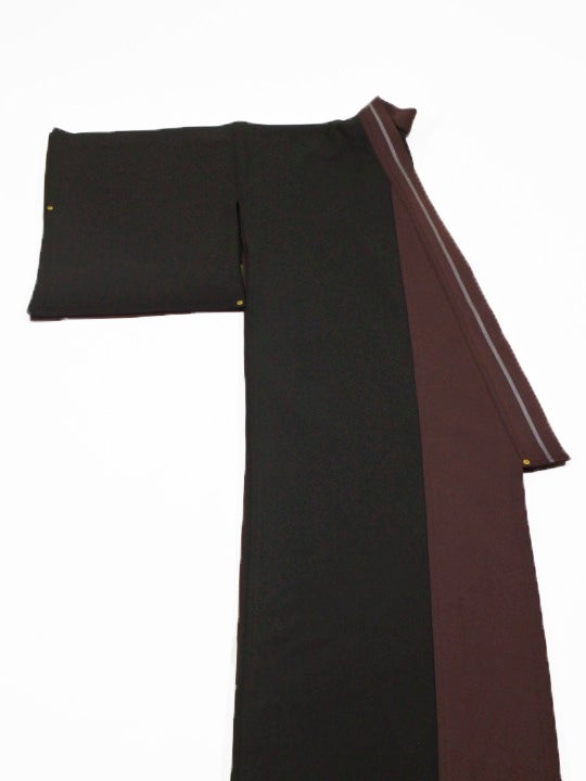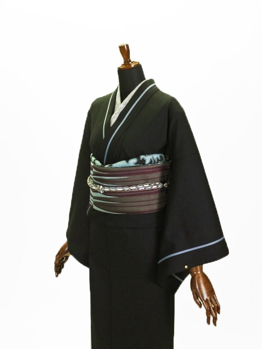 レディース ポリキモノ 縞ボタン2(ブラック)F