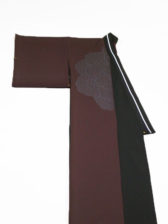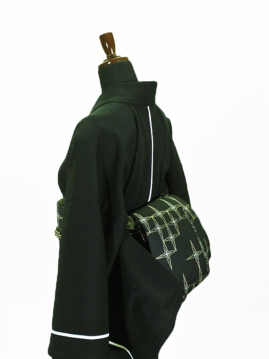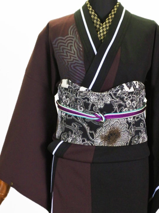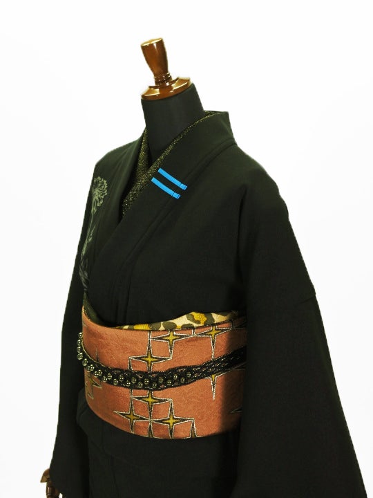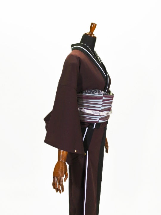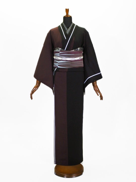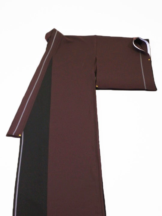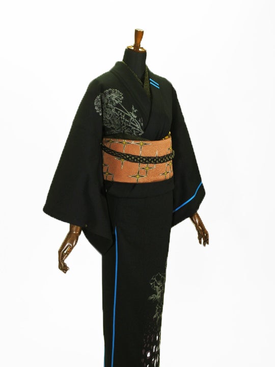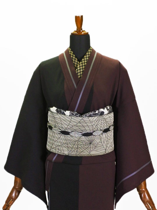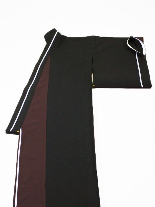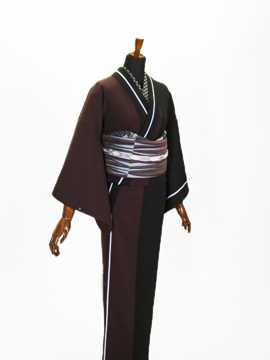 レディース ポリキモノ 縞ボタン2(ブラック)F