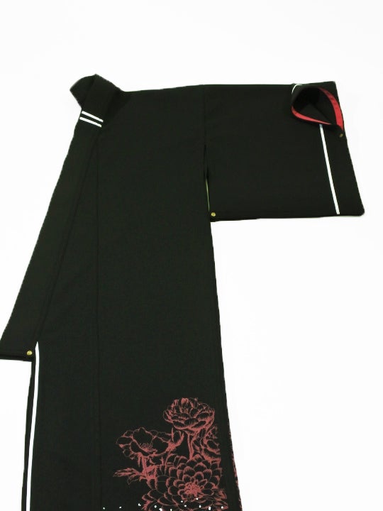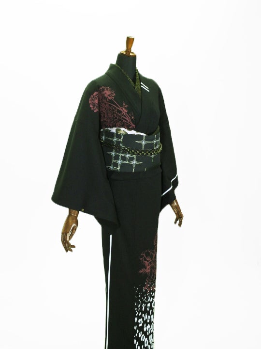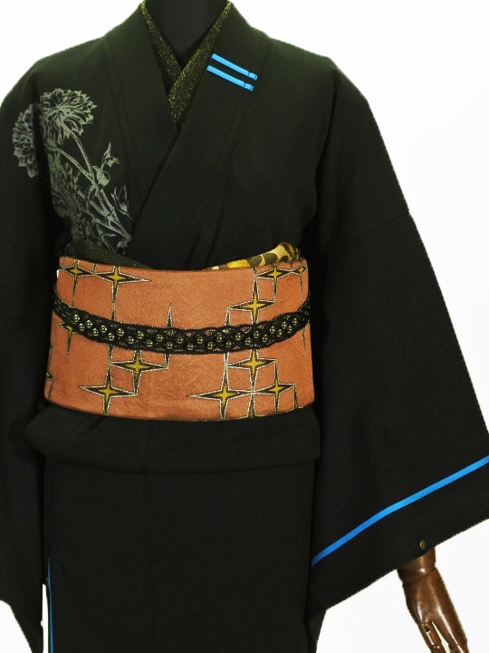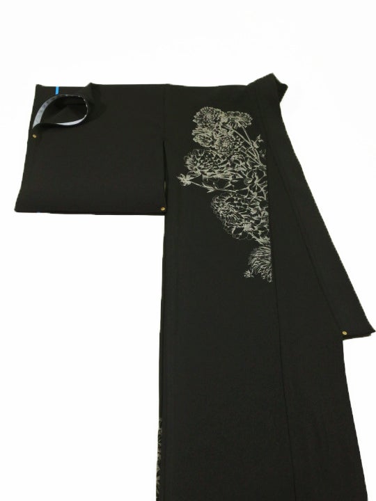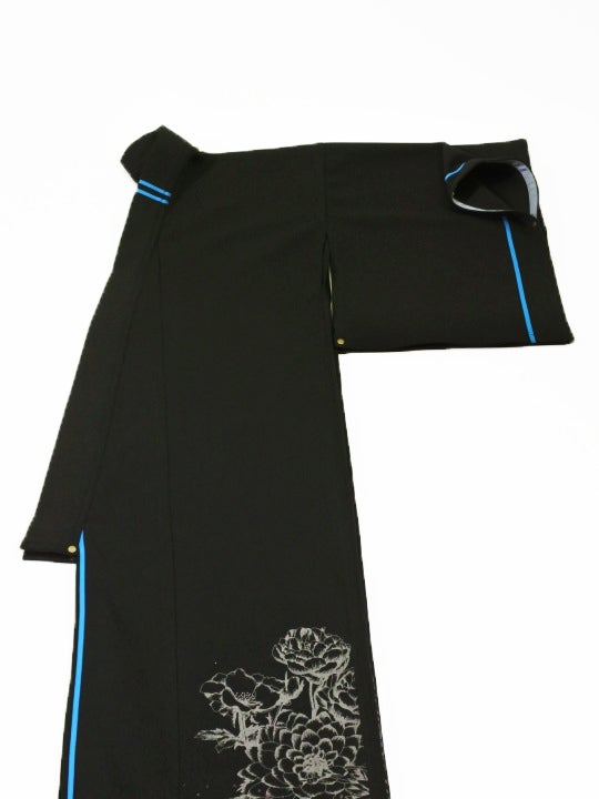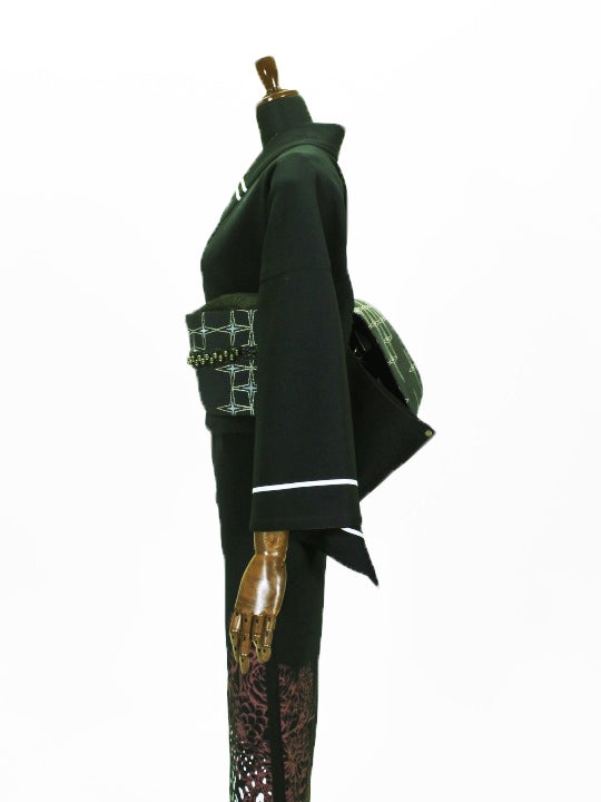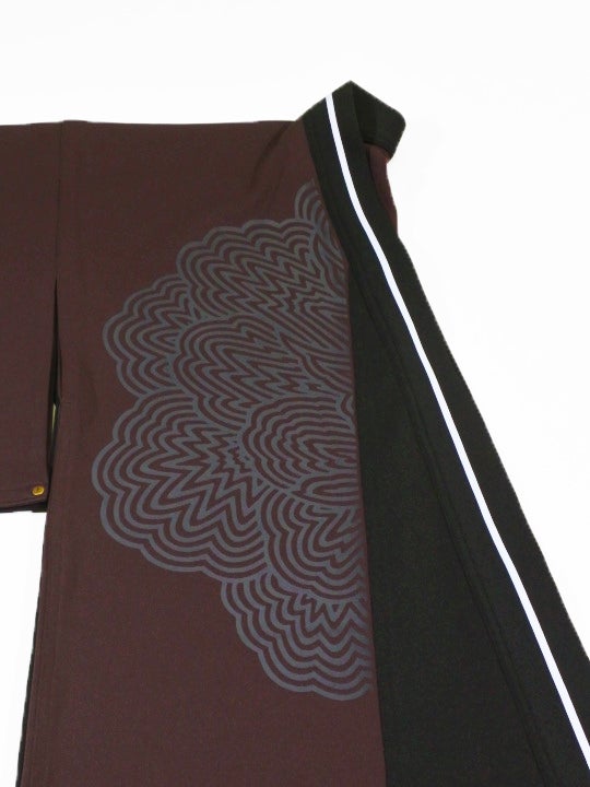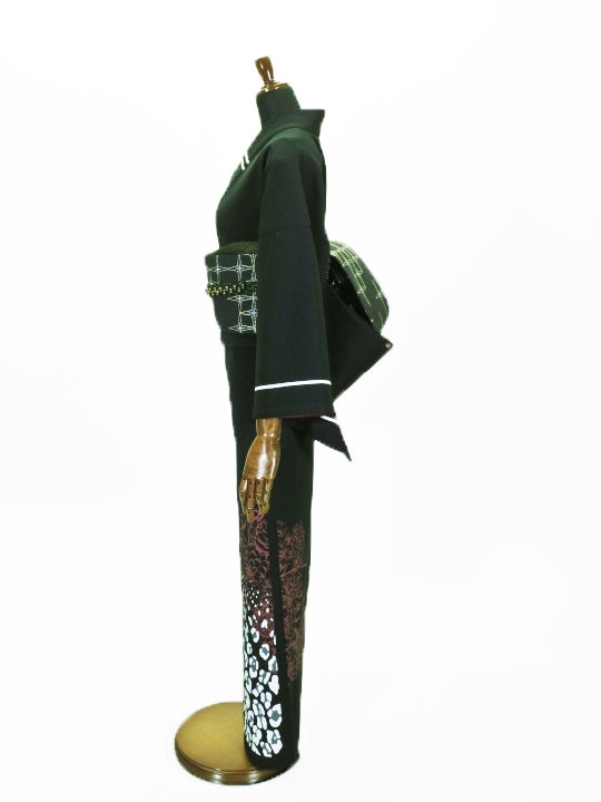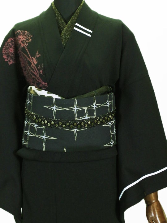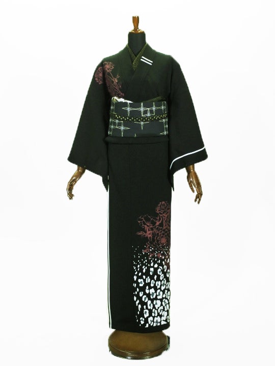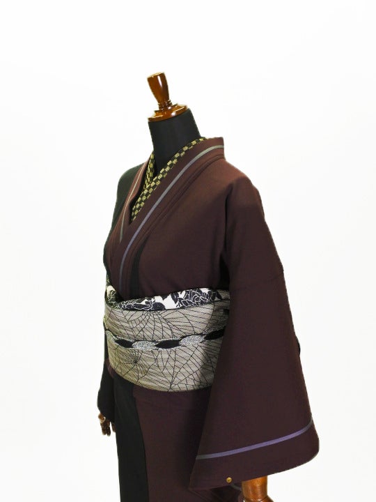 レディース ポリキモノ 縞ボタン2(ブラック)F