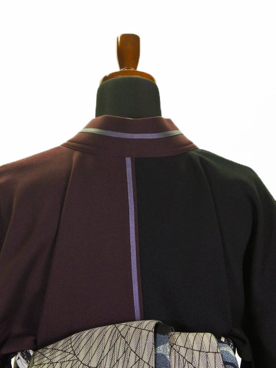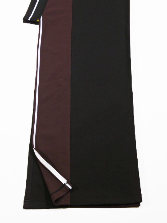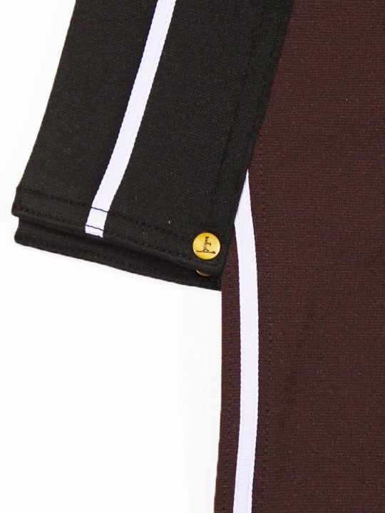 レディースバイカラージャージ 縞ボタン (クロ×ワイン)F