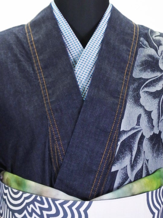 レディースデニム6.5OZ 大ボタン1(濃BU×金茶)F