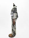 2017コレクション「The play time」にて発表された新柄。 反物に収まりきらないダイナミックな草花を、シルエットで表現。 仕立て上がると、大胆なデザインです。 草花柄ですが、モノトーンなので甘くなりすぎず、 むしろモード感があり、スカッとクールに。 帯のコーディネートもしやすい1枚です。
