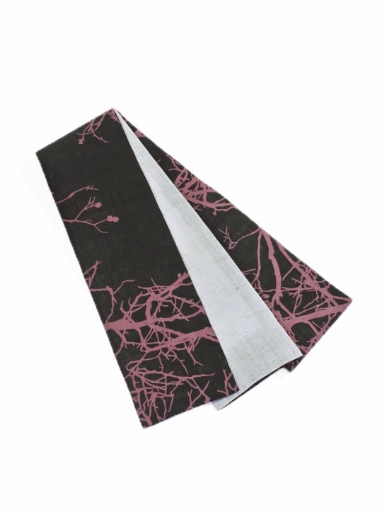 半巾帯0197-01本麻 枝シルエット(クロ・ワイン)