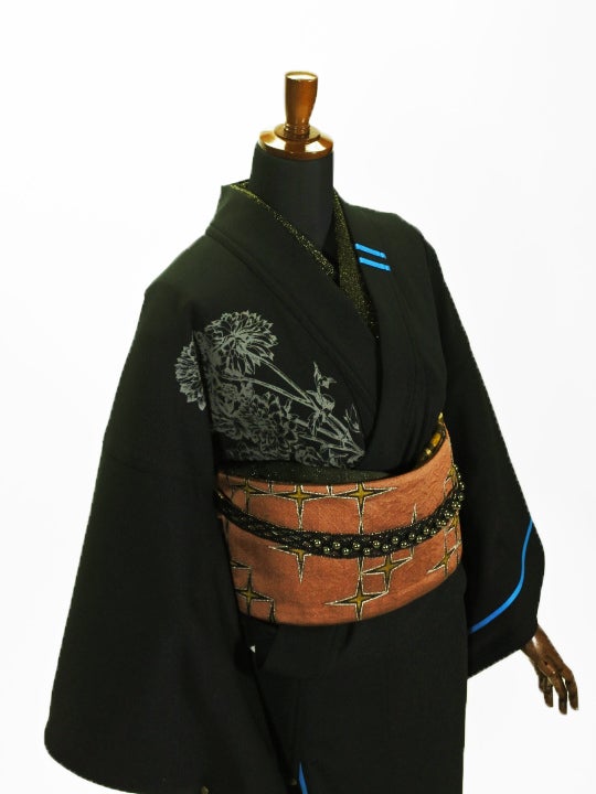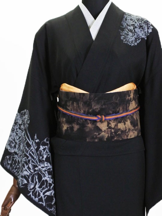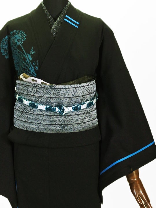 OA23-10-08帯揚げ 銀ブロックメッシュ(焦茶)