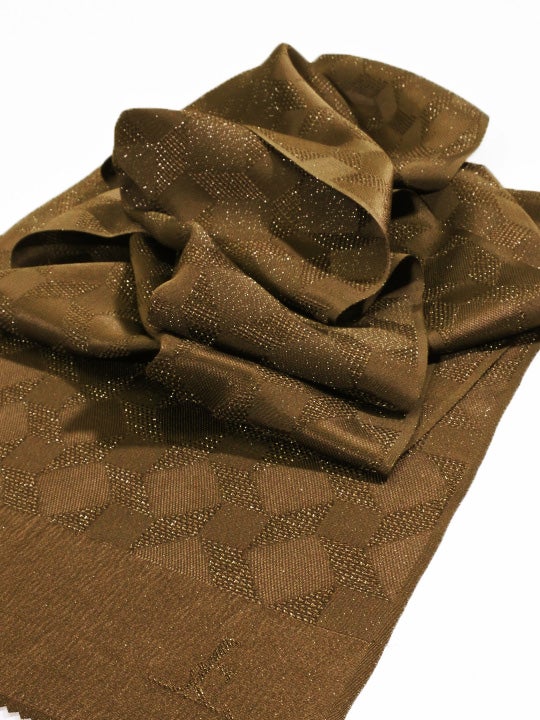 OA23-10-01帯揚げ 銀ブロックメッシュ(ブラウン)