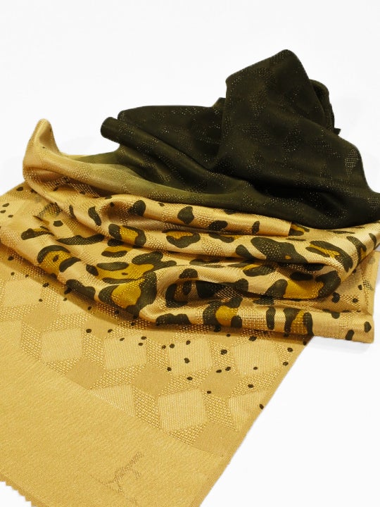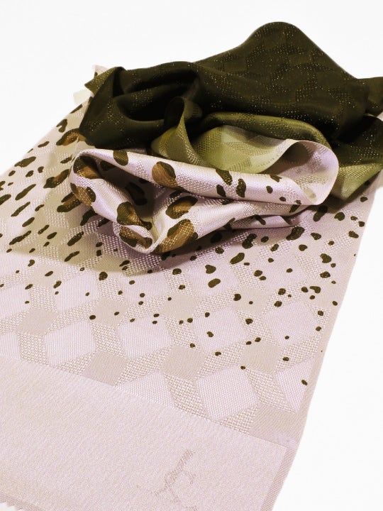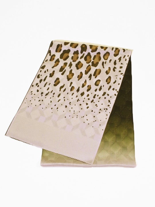 帯揚げ OA25-02-02 レオパード半身ボカシ(銀ブロックメッシュ/イエロー)