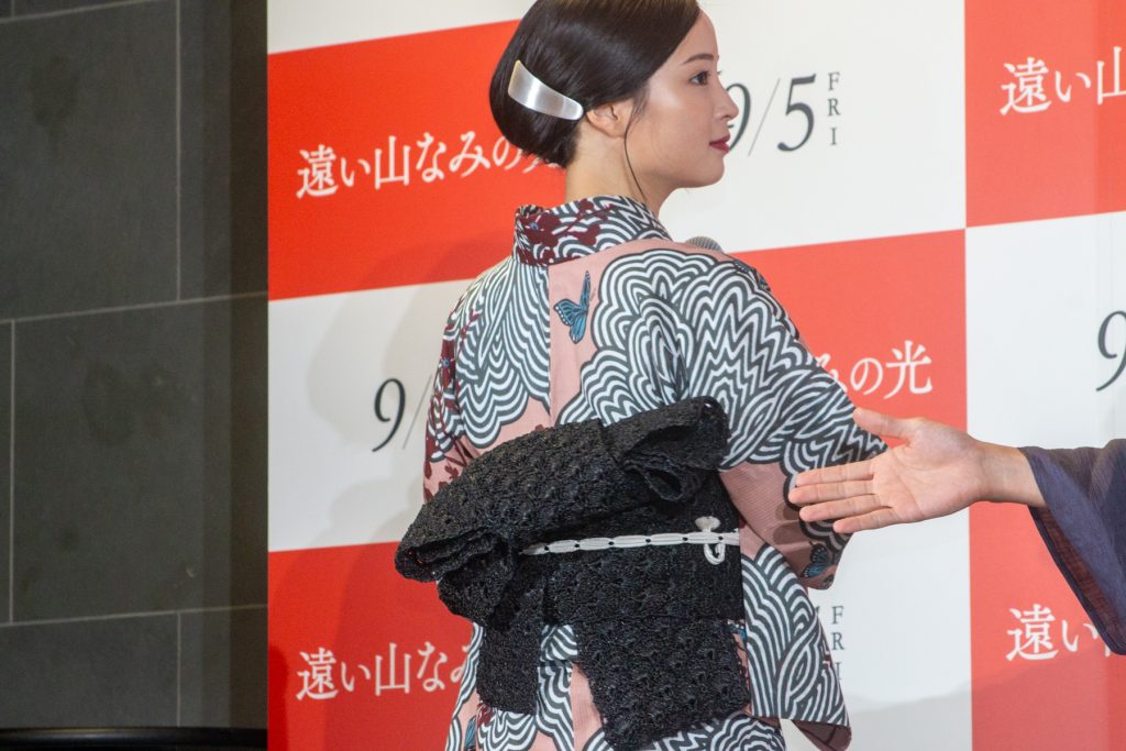 映画『遠い山なみの光』 8月24日 東京の神田明神でのヒット祈願イベントにて、広瀬すず様に浴衣・和紙半巾帯・帯締め・足袋・下駄など御着用いただきました。
